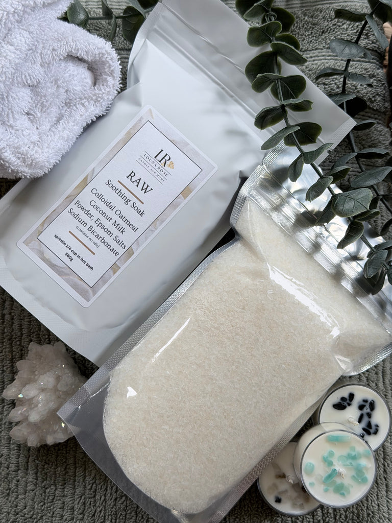 Transform your bath into a gentle spa retreat with this comforting mineral soak. Finely milled colloidal oatmeal and creamy coconut milk powder soften and soothe the skin, while baking soda helps calm and refresh. Mineral-rich Epsom salts ease tension and encourage deep relaxation, creating a warm, restorative bathing experience. Silky, comforting, and deeply nourishing, this soak leaves skin feeling smooth, calm, and beautifully cared for. Contains no oils.