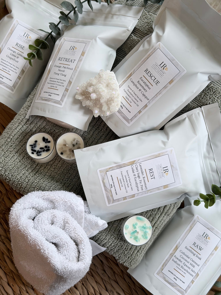 Experience a deeply restorative mineral soak designed for true muscle relief and refined relaxation. Cooling eucalyptus, camphor, and cajeput release a clean, therapeutic vapor that helps ease tired muscles and restore a sense of physical comfort, while fresh rosemary brings a crisp herbal clarity. Pure Epsom and Dead Sea salts dissolve into the water to help relax tension and replenish the body, as lightweight coconut and jojoba oils leave skin smooth and quietly nourished. A luxurious muscle-rescue ritual — soothing, clarifying, and designed to restore both body and mind